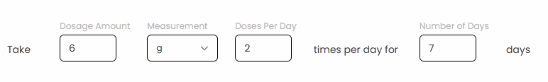 Dosage Inputs are a structured set of fields that define how the dosage is administered. If not required, this entire section can be disabled.