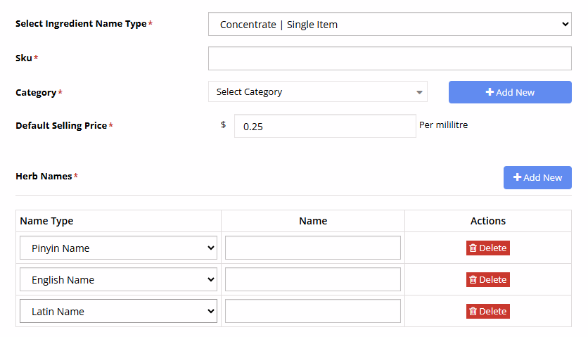 This section explains how to manually add a new ingredient to your dispensary catalog.