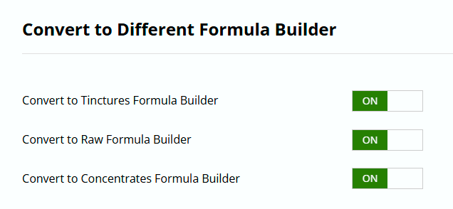 Toggle the conversion option ON to allow users to convert formulas from this Formula Builder to others