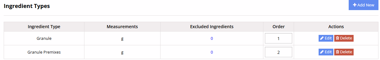 Ingredient selection priority is controlled by the Ingredient Type Order.