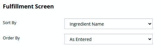 Fulfillment Settings control how ingredient data is displayed when preparing or fulfilling an order. This includes which data columns are shown and the order in which ingredients appear during fulfillment.