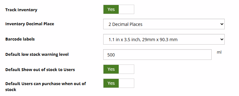 Inventory Settings ensure consistent stock tracking behavior across all ingredients of the same type and help prevent ordering and fulfillment issues.